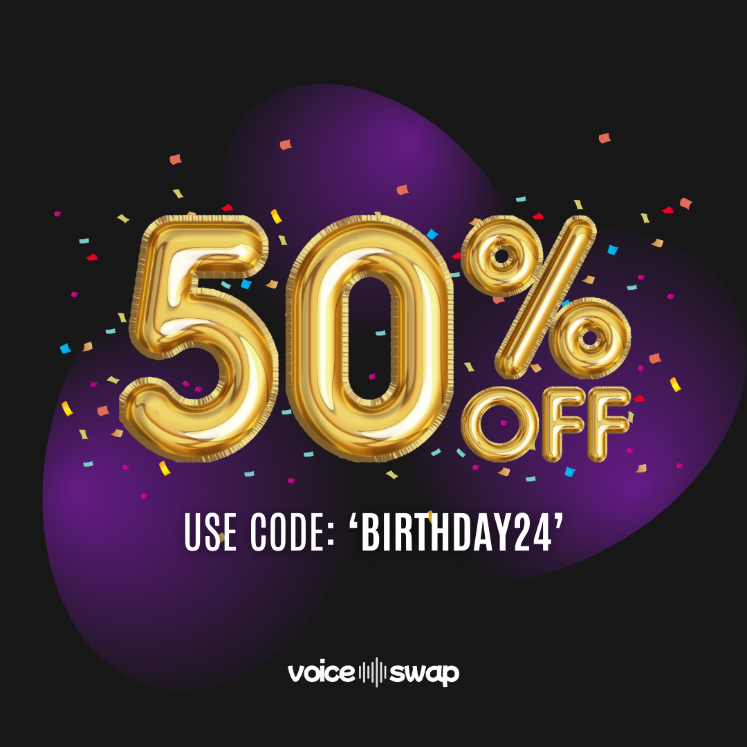 Voice-Swap is officially one year old! And what a year it’s been with over 180,000 of you enjoying our high-quality voice models that pay our artists royalties every time you use them. To celebrate our first anniversary, we’re giving you a huge 50% off Beginner Plan subscriptions!